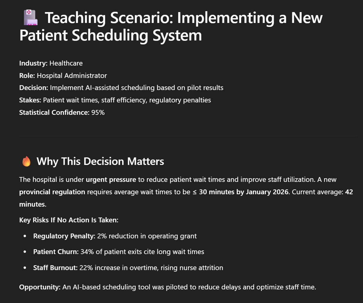 Before AI, you'd spend hours hunting for realistic business scenarios with actual confidence interval data, then more time making them relevant to your students.